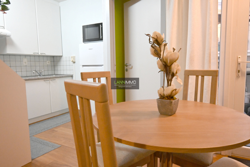 - volledig geïnstalleerd en bemeubeld appartement met sanitaire voorzieningen