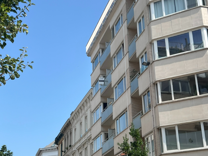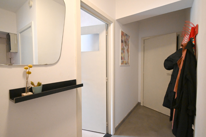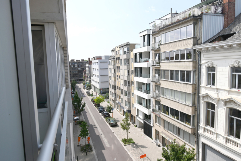 Het appartement (± 81m²) met hedendaagse, moderne afwerking bevindt zich op de vierde verdieping van een verzorgd gebouw. De leefruimte baadt in het licht dankzij de grote raampartijen en hoge plafonds. Het is er heerlijk vertoeven in de knusse zithoek met ingemaakte bibliotheek. De open keuken is volledig uitgerust en sluit aan op de eet- en zithoek. Er zijn twee lichtrijke slaapkamers en een moderne badkamer met douche en aansluiting voor was en droog. Samen met een apart ruim toilet geven deze kamers uit op de nachthal. Bovendien geniet je van een zuidgericht knus terrasje die aansluit op de master slaapkamer en waar het genieten is van bij het ontbijt tot bij de apéro of later... Een tweede kleiner terras/balkon aan de voorzijde van het gebouw is ideaal voor het wegbergen van vuilnisbakken, netjes uit het zicht.
