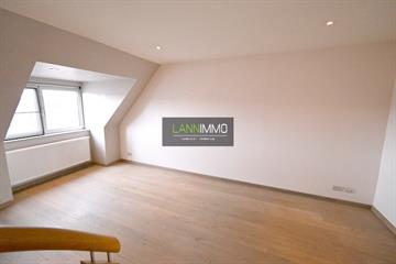 We komen binnen op de benedenverdieping van de triplex (vloeren in kurk) met ruime, open hal, gasttoilet en bergruimte met aansluiting voor wasmachine en droogkast. Einde van de hal bevindt zich de ruime Master slaapkamer. Vooraan bevindt zich de tweede slaapkamer of bureau met mooi zicht op het centrum. Naastgelegen vinden we de volledig uitgeruste badkamer (wanden en vloer in kurk) met ruime inloopdouche, dubbele wastafel en design radiator. Op het tweede verdiep kom je binnen in de leefruimte met hoogwaardig, vol massief parket en verder een echte parel van een keuken. Hyper uitgerust met volwaardige koelkast en diepvries, combi microgolfoven, combi stoomoven, espresso inbouw koffiemachine, inductiekookplaat, dampkap en vaatwasser. Op de derde verdieping vinden we nog een 3de ruime slaapkamer en extra leefruimte die men kan inrichten als relaxruimte. Het appartement beschikt tevens over een onderhoudsvriendelijk, zuidoost gericht terras. Ter info: er is geen lift aanwezig in het gebouw.